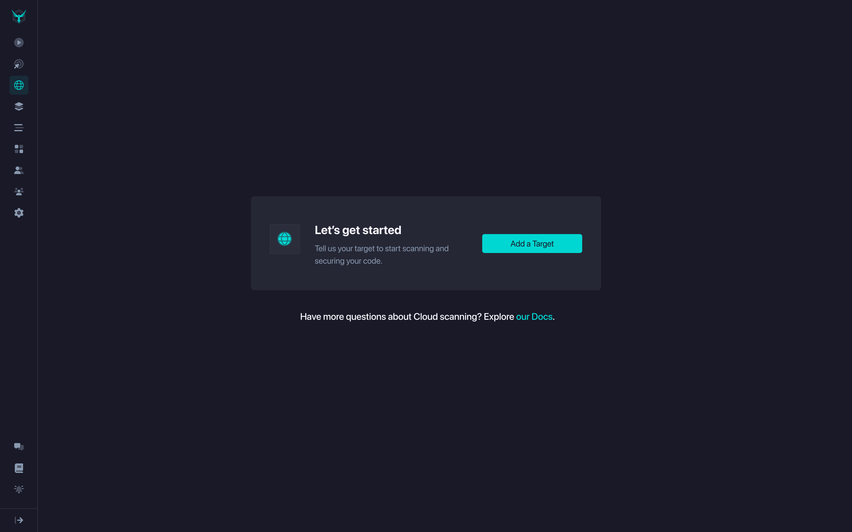 Getting Started page: Early prototypes showed that dropping users into an "Add a Target" screen with no context was confusing. I created a Getting Started page that explained what would happen next, linked to helpful documentation, and gave them a clear first step.